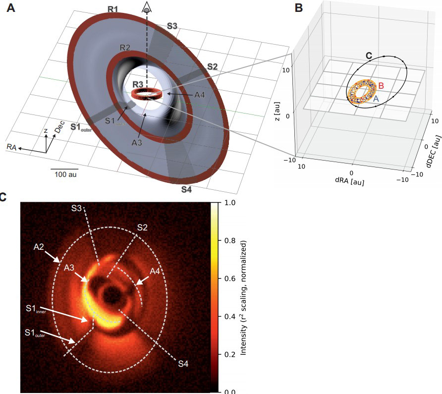 The left panel shows my visualization of the inner region of the disc, including the ring, which is based on the 3D shape reconstructed by the team.